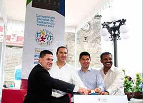 PUEBLA, Puebla.- En medio de una fiesta popular en el zócalo de Puebla, este sábado se puso en marcha el reloj que marca la cuenta regresiva a un mes del inicio del Campeonato Mundial de Taekwondo 2013, que comenzará el 15 de julio en el Centro Expositor esta ciudad.